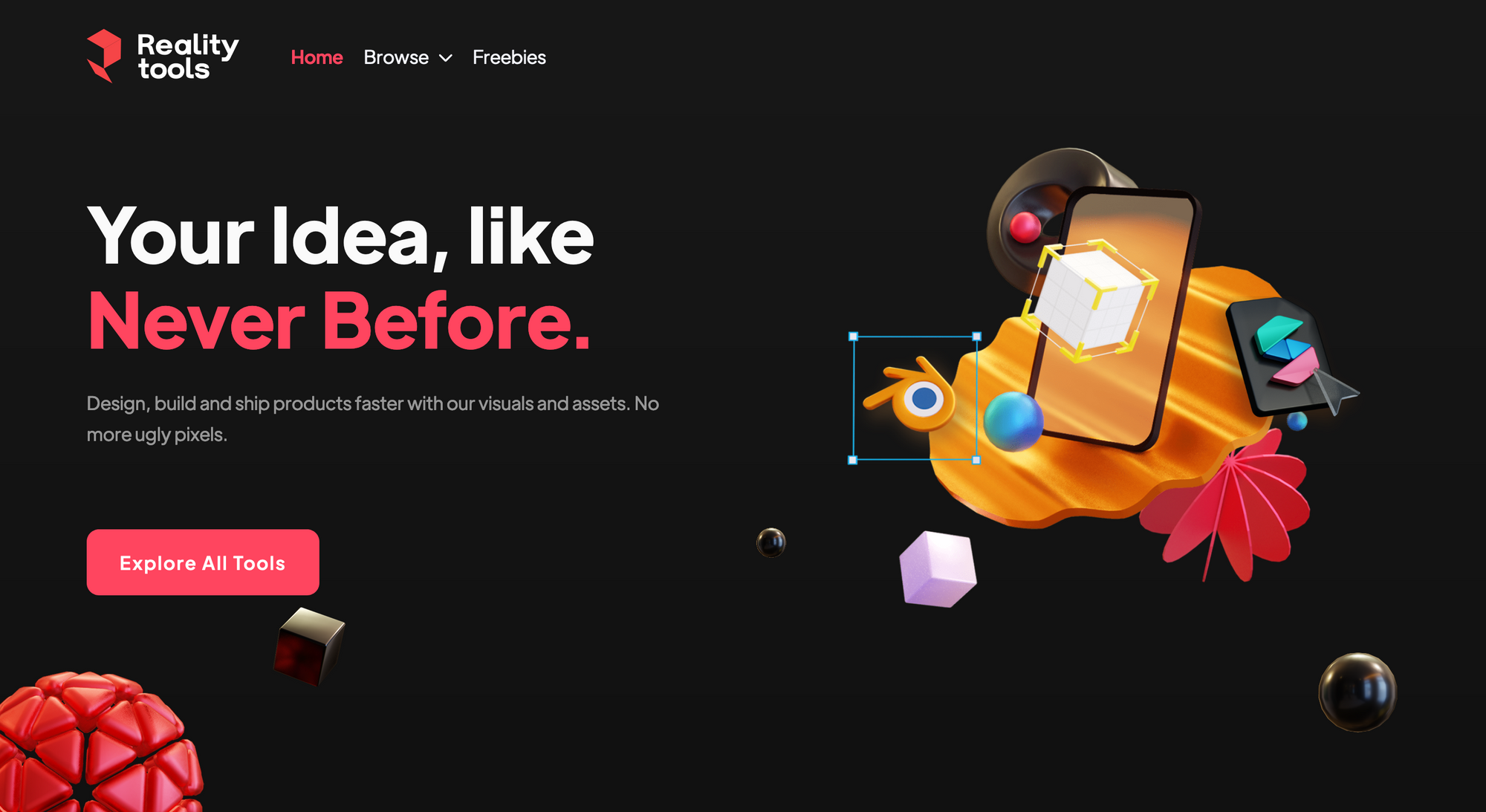 Reality Tools is a huge collection of design resources that helps you design, build, and ship products faster. Reality tools features high-quality visuals and assets to kickstart your next project and boost your productivity. No matter if you are looking for 3D Icon pack, Spark AR Templates, Figma Templates, Webflow Templates, or anything else, Reality Tools got you covered with a super and outstanding selection of assets. It is pure joy to scroll through Reality Tools selection of high-quality resources. Besides some paid resources, they also have a wide range of free tools, which you can download straightaway. Check it out now.