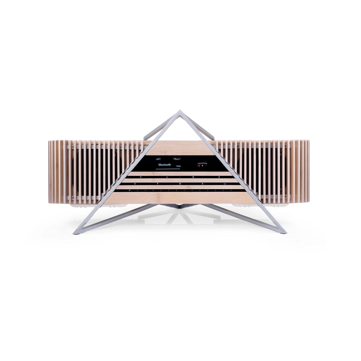 Crafted by a French designer, the iFi Aurora Wireless Bamboo Music System gets its look from Japanese architecture. Additionally, with a primarily bamboo exterior, the Aurora has metal accents. With a triangular aluminum frame, it has a somewhat vintage, mid-century modern look. Moreover, its PureEmotion amplifying technology, this wood music system engages you in the purest form of the music you love.