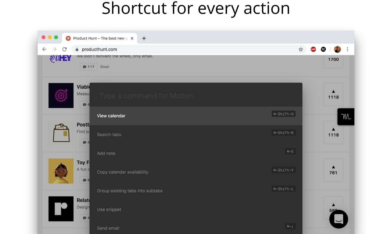 Fastest way to get things done in the browser, Motion helps you stay in flow while working. Grouped tabs, one-click access to work tools on any page, customizing web pages, and more - Motion is a layer of productivity on top of Chrome.