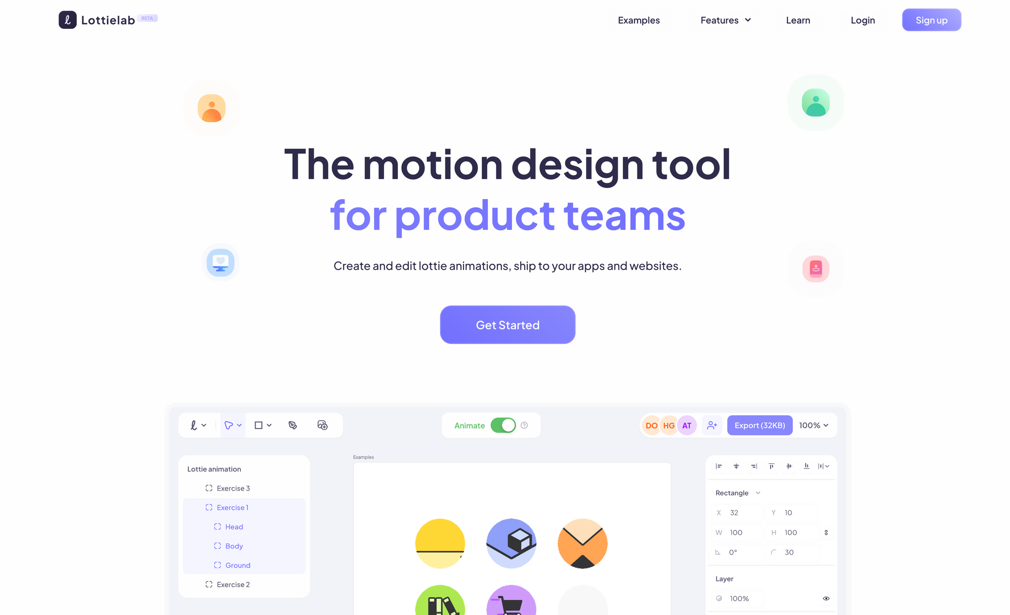 What makes LottieLab unique is the way it gives everyone access to an intuitive way to animate your assets with ease and speed, easy-to-learn, and packed with powerful features. Once your animations are done and finished, you can download Lottie JSON files for Web, iOS, Android projects, but you can also export them for platforms like Wordpress, Framer, Webflow, Squarespace*, and more. With LottieLab's love link you can directly reference your asset URL from LottieLab. Last but not least, LottieLab lets you export your animations to traditional formats like GIF and MP4 for use in places that do not support Lottie. Besides that, you can share your animations with your colleagues and collaborate together on them directly on your canvas.