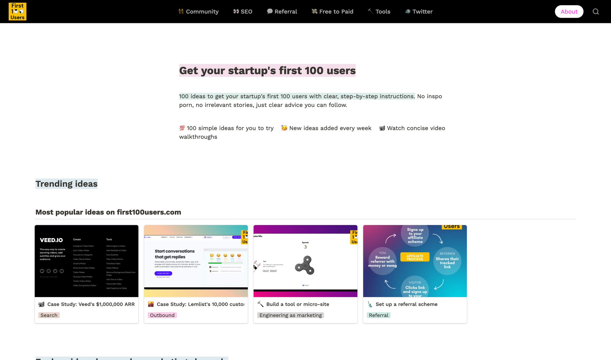 So, if you are looking for actionable ideas instead of irrelevant stories, or useless inspirations, make sure to check out first100users.com.