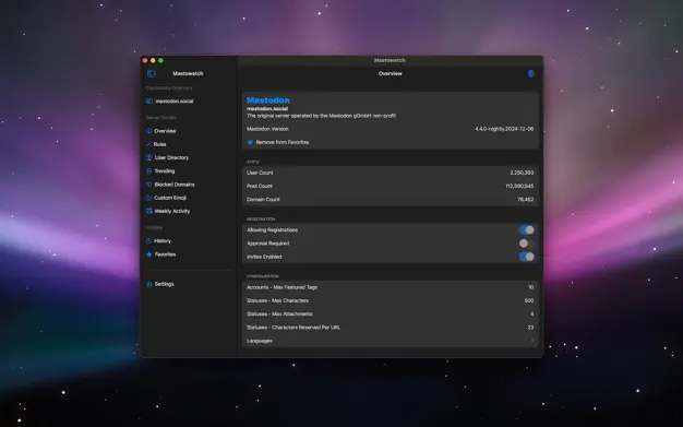 In a beautiful interface, you can view user and post counts, trending links and posts, blocked domains, custom emojis, rules, supported languages, supported upload types and sizes, character limits, and more. No matter if you are already a seasoned Mastodon user or just starting out, Mastowatch is a great place to start your research for finding the perfect instance that fits your needs, so you can have a great time on Mastodon.