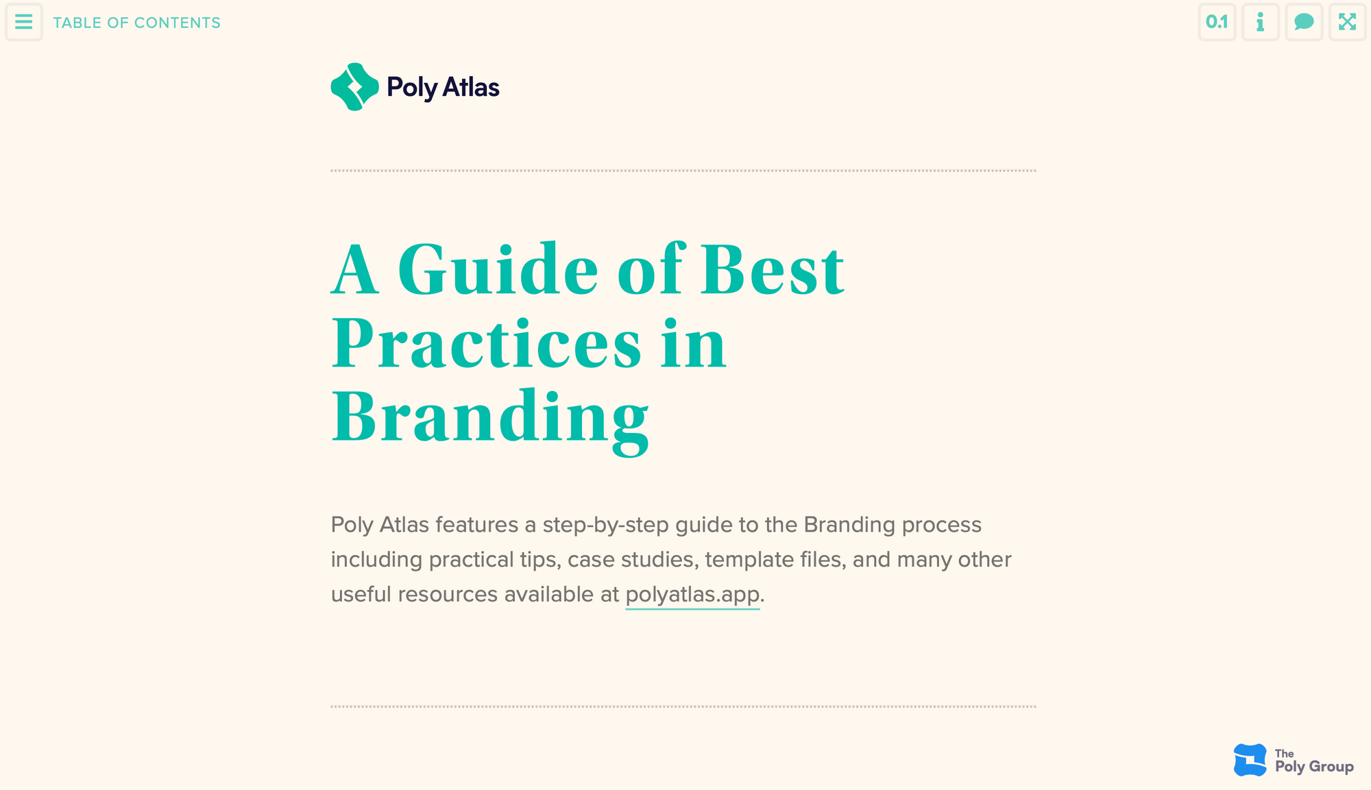 Poly Atlas features a step-by-step guide to the Branding process including practical tips, case studies, template files, and many other useful resources available at polyatlas.app.