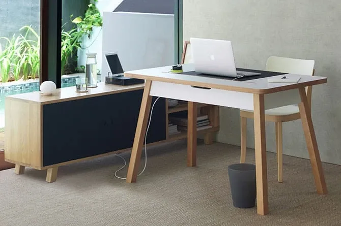 Easily organize your workspace with the Bluelounge StudioDesk Advanced Office Desk. Featuring a table style design, this desk comes with everything you need to keep your work area neat and tidy. StudioDesk allows you to store cables, adapters and other messy items right underneath the desktop for a spotless appearance. Likewise, the storage compartment sits beneath the sliding desktop surface for quick and easy access.