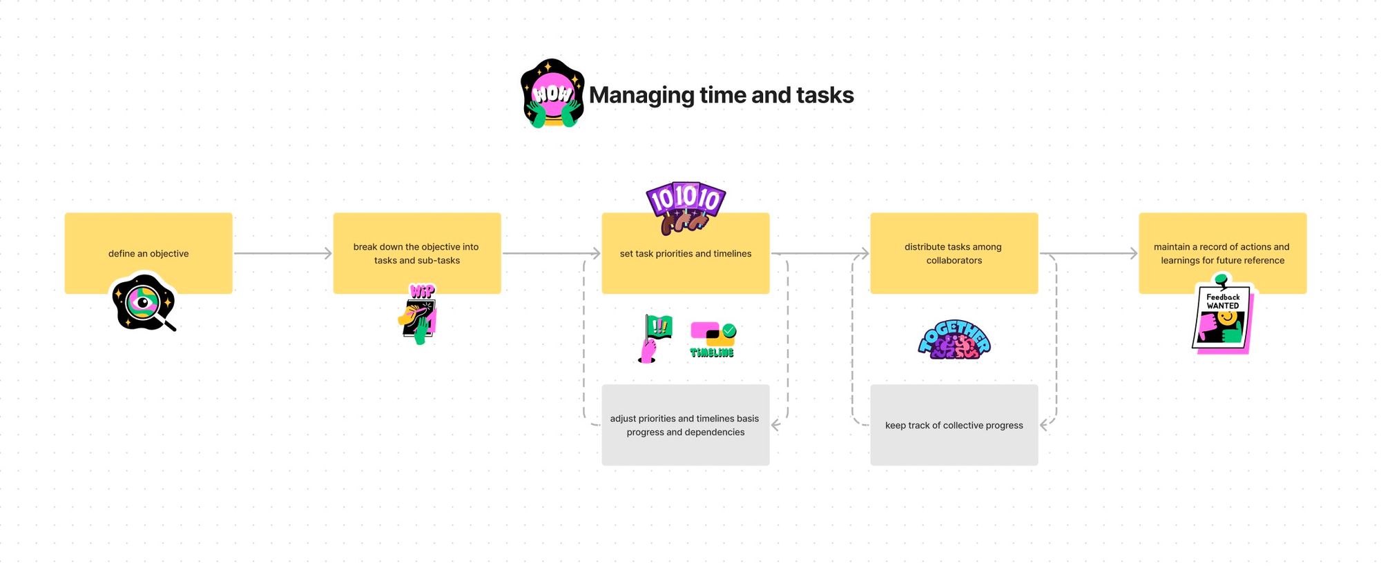 - Setting a plan and managing tasks: Deciding an objective, breaking down the plan into smaller tasks and setting the timeline (aka your friendly neighbourhood PM)