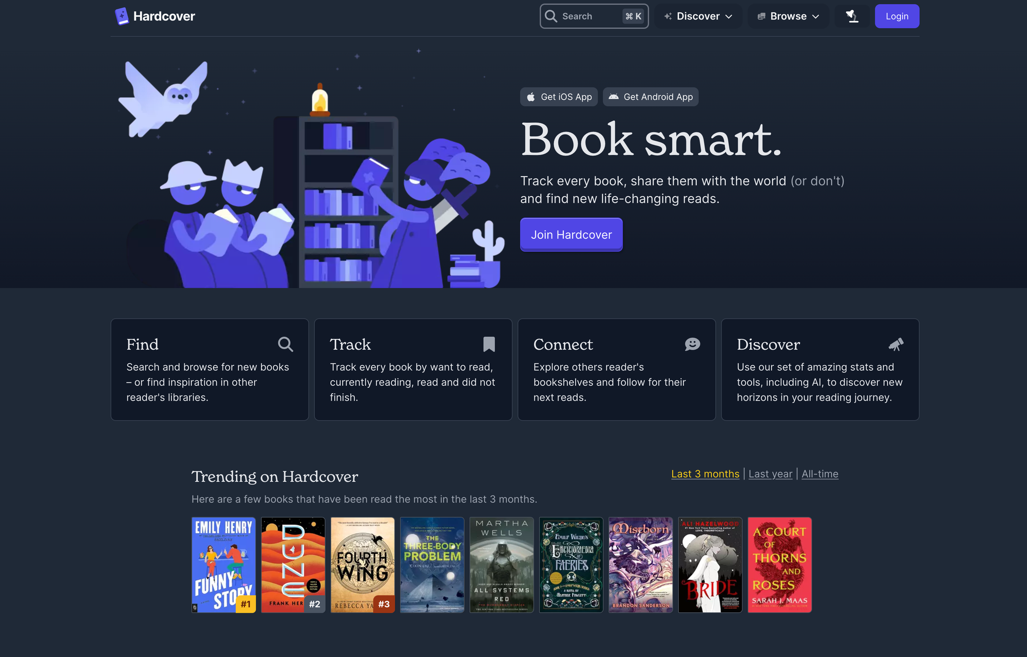 Another fighter who stepped into the ring to compete agains Goodreads is Hardcover. While I went on the hunt for alternatives for Oku and Literal, as I did not want to spend more time with platforms that might shut down soon, I stumbled across Hardcover. Just like Oku and Literal, Hardcover discovered that there is a need for better Goodreads alternative, powered by better recommendations, better and more stats on users' reading history, less spam, and fewer bugs. Hardcover is the product of that, an app that allows users to search and browse for new books, track every book that you want to read, are currently reading, or did not finish, connect with fellow readers, and use a set of stats and tools, including AI, to discover new horizons in your reading journey.