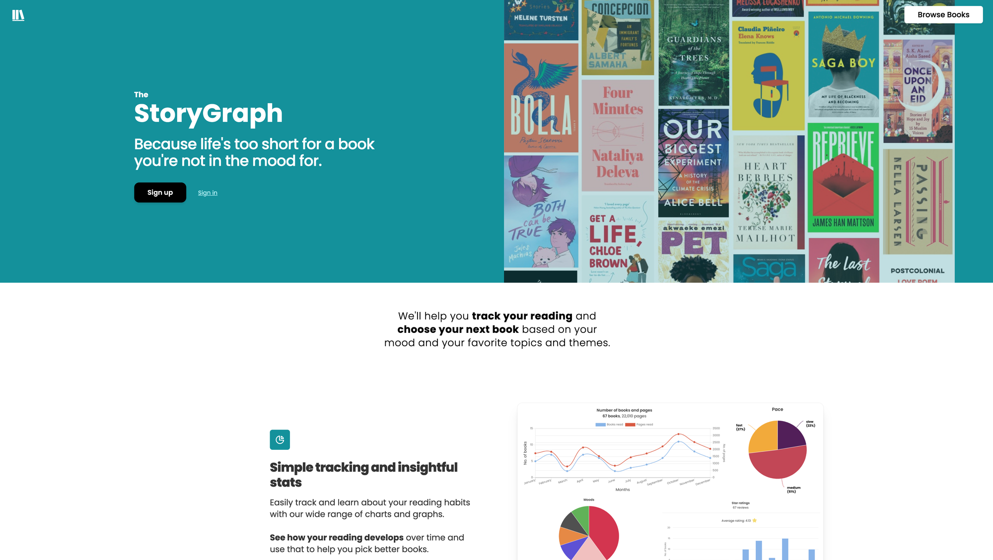 StoryGraph looks lovely and very appealing. As it has apps for iOS and Android, features the possibility to import your Goodreads data, and is free-to-use (with a Pro subscription available to unlock more features) it checks off already a lot of boxes when searching for a better Goodreads alternative. If you are looking for simple tracking tools and insightful stats, StoryGraph is a lovely Goodreads alternative to take a closer look at. It provides a wide range or charts and graphs to visualize your reading habits and progresses. Besides that, those stats, charts, and graphs will provide you with the information you need to see how your reading develops over time, so you can use that information to pick your next favorite book.