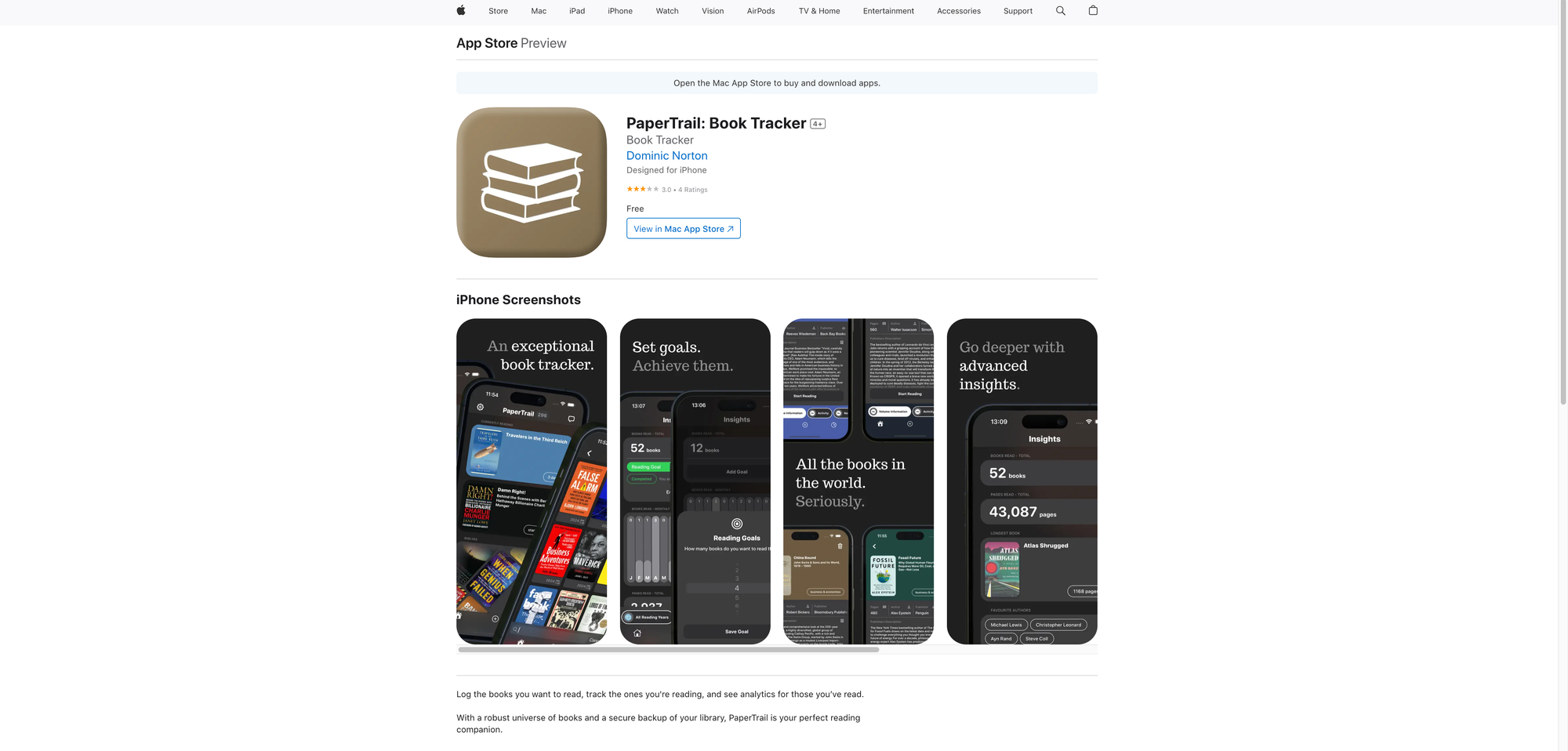 I would not consider PaperTrail a full-fledged Goodreads alternative, since it does not feature the social aspect of book tracking at all, but it rather gives you a private and personal space to log the books you want to read, track the ones you are currently reading, and see some stats and analytics for the ones you have read already. PaperTrail is available for iOS and features a modern design which makes it a joyful experience adding new books you would like to read in the future. As of writing this, the most recent app update has been shipped two months ago, so it seems like the app is still in active development.