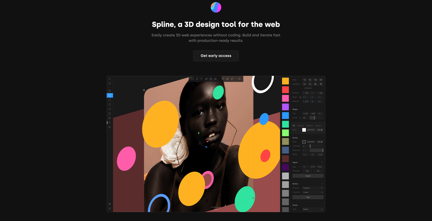 Since the performance of web browsers is getting better and better, more and more tools move to the web. Figma might be the most popular web app, and it is super snappy and incredible fast. Besides design tools for UI, Illustration, and Graphic Design in general, there are not that many options for 3D design tools operating in the web. Spline is exactly that, a 3D design tool for the web which lets you easily create 3D web experiences without coding. Build and iterate fast with production-ready results. Use visual tools to create or edit 3D content, add interactions, and export/share production-ready web assets (like JS, HTML, CSS). Currently, you can sign up for early access and I am super excited to test this out once Spline launches to the public.