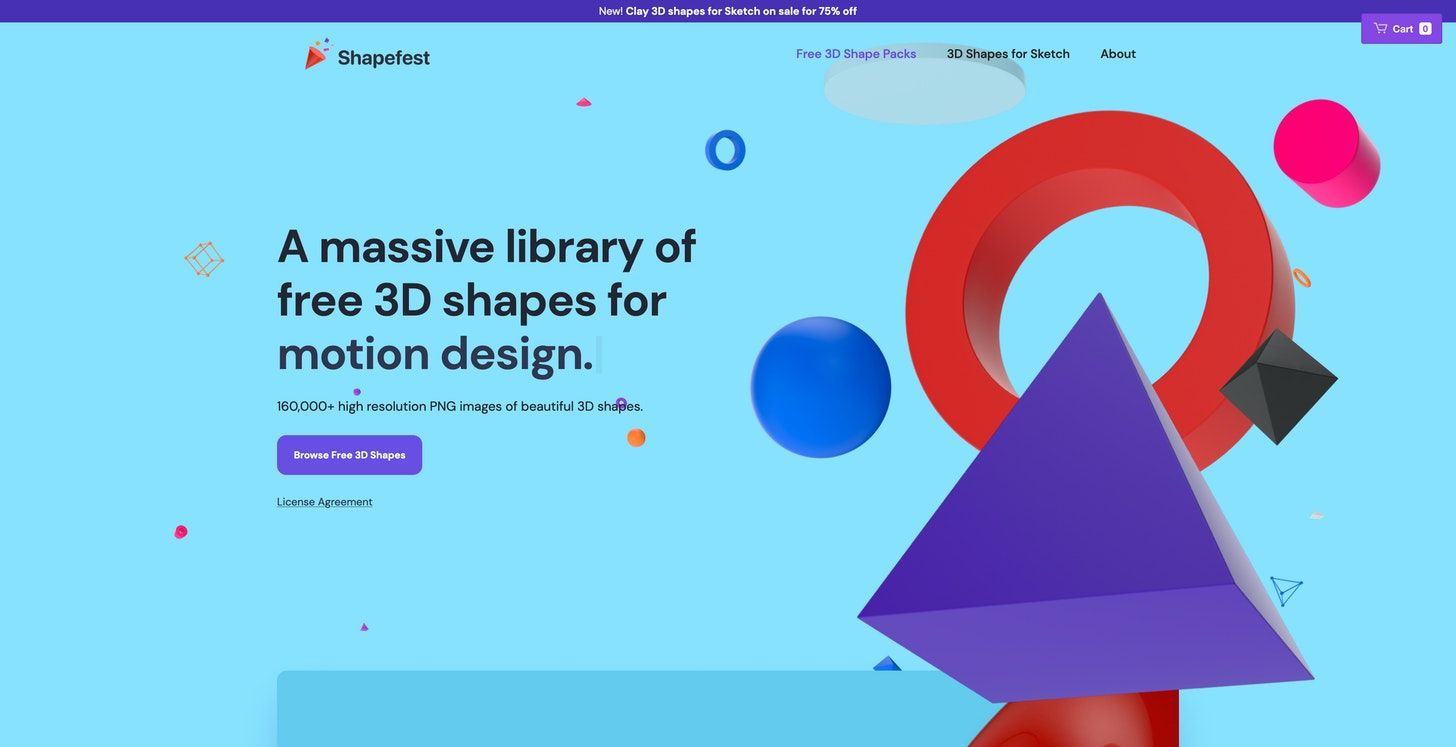 Shapefest is a huge library with over 160,000 3D shapes neatly organized in categories, available in high-resolution PNG images. And guess what, you can use those shapes both for personal and commercial projects. Shapefest was made by Joseph Angelo Todaro, Senior Product Designer at InVisionApp and Professor of Design at LCAD. He created this library with incredible detail, creating photorealistic, high-res renders, you can use anywhere. Another advantage: if you are a Sketch User you can conveniently integrate a Sketch Library which gives you immediate access to 140 3D shapes to use in your design projects.