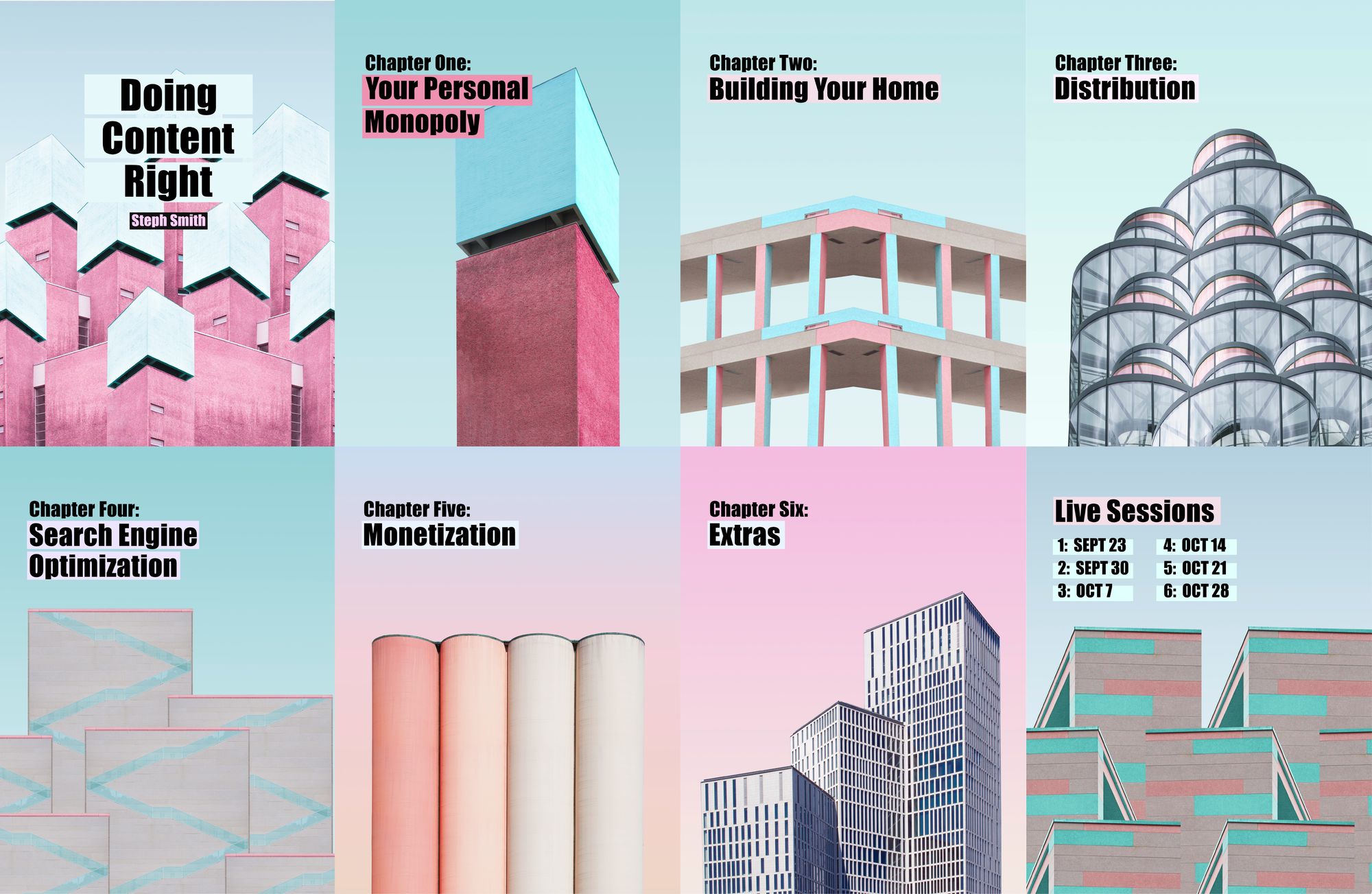 By buying the course, you get access to 270 pages in PDF, EPUB, and MOBI format, a community of hundreds of creators, 22 actionable exercises, 12 video sessions going over the material, and a bonus section on podcasting.