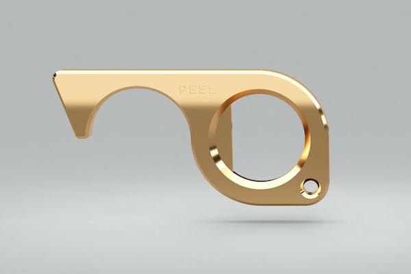 The hook & pointer enables you to open doors, press buttons, and checkout without touching shared surfaces. It's cut from a solid piece of brass, which is naturally antimicrobial. It goes on your keychain so you always have it with you.