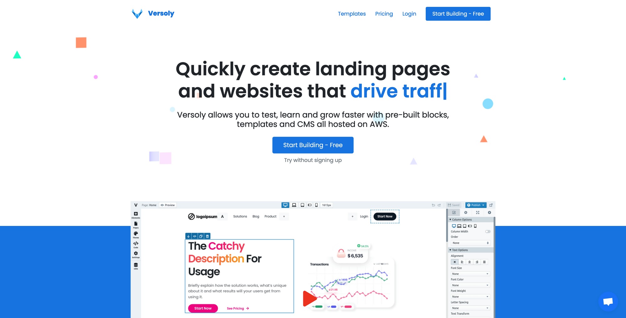 Versoly is an awesome tool that lets you quickly create landing pages and websites with the power of pre-built blocks and templates. Versoly has become increasingly popular for emerging SaaS companies, as it lets you create a landing page for your upcoming product within 30 minutes, thanks to Versoly's pre-built blocks.
