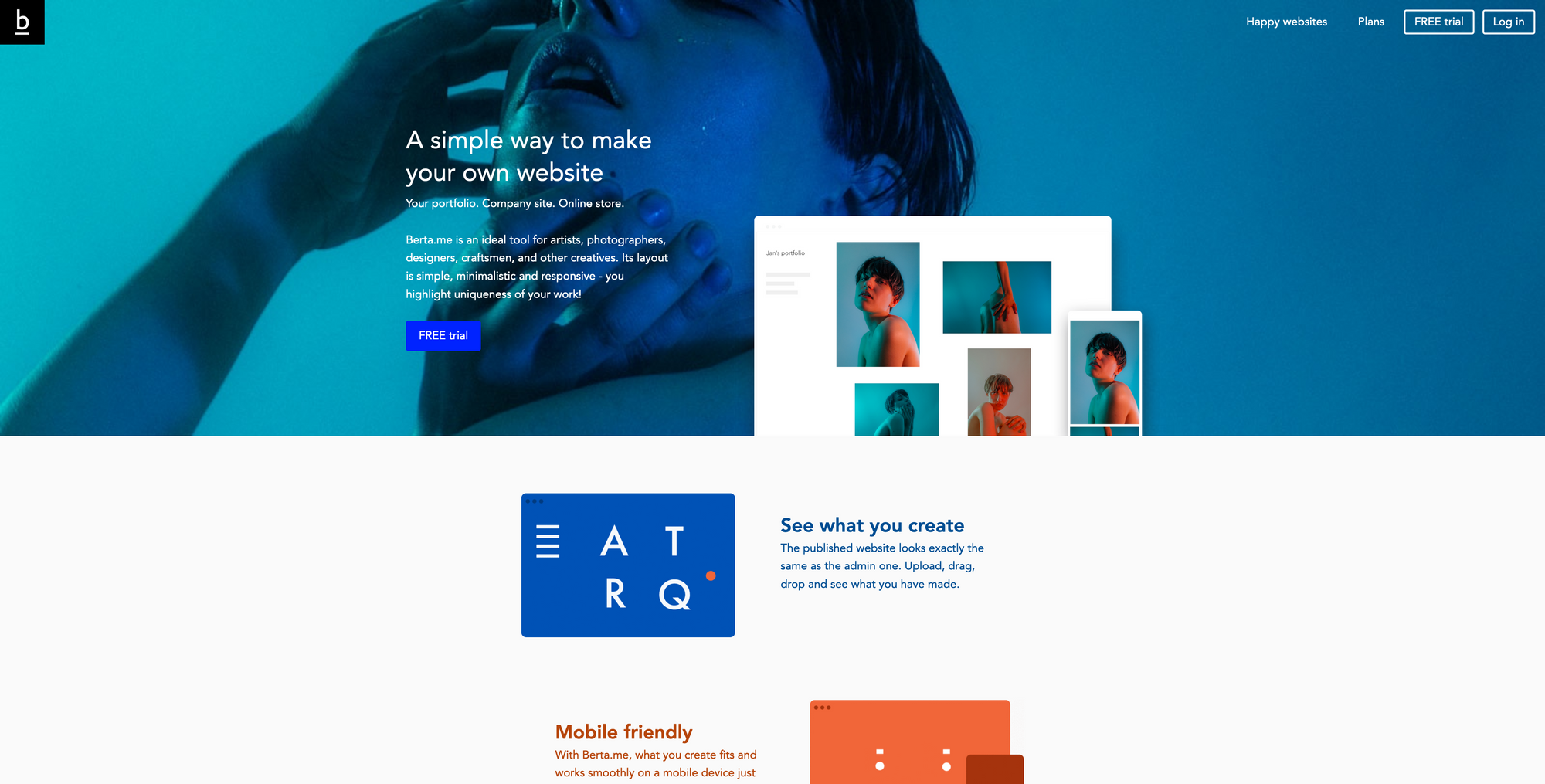 Berta is a super simple tool to create your personal website. It is especially aiming at artists, photographers, designers, and other creatives. Berta features a simple layout, which gives you the possibility to showcase your work with a minimalistic and responsive website. Berta lets you highlight the uniqueness of your work.