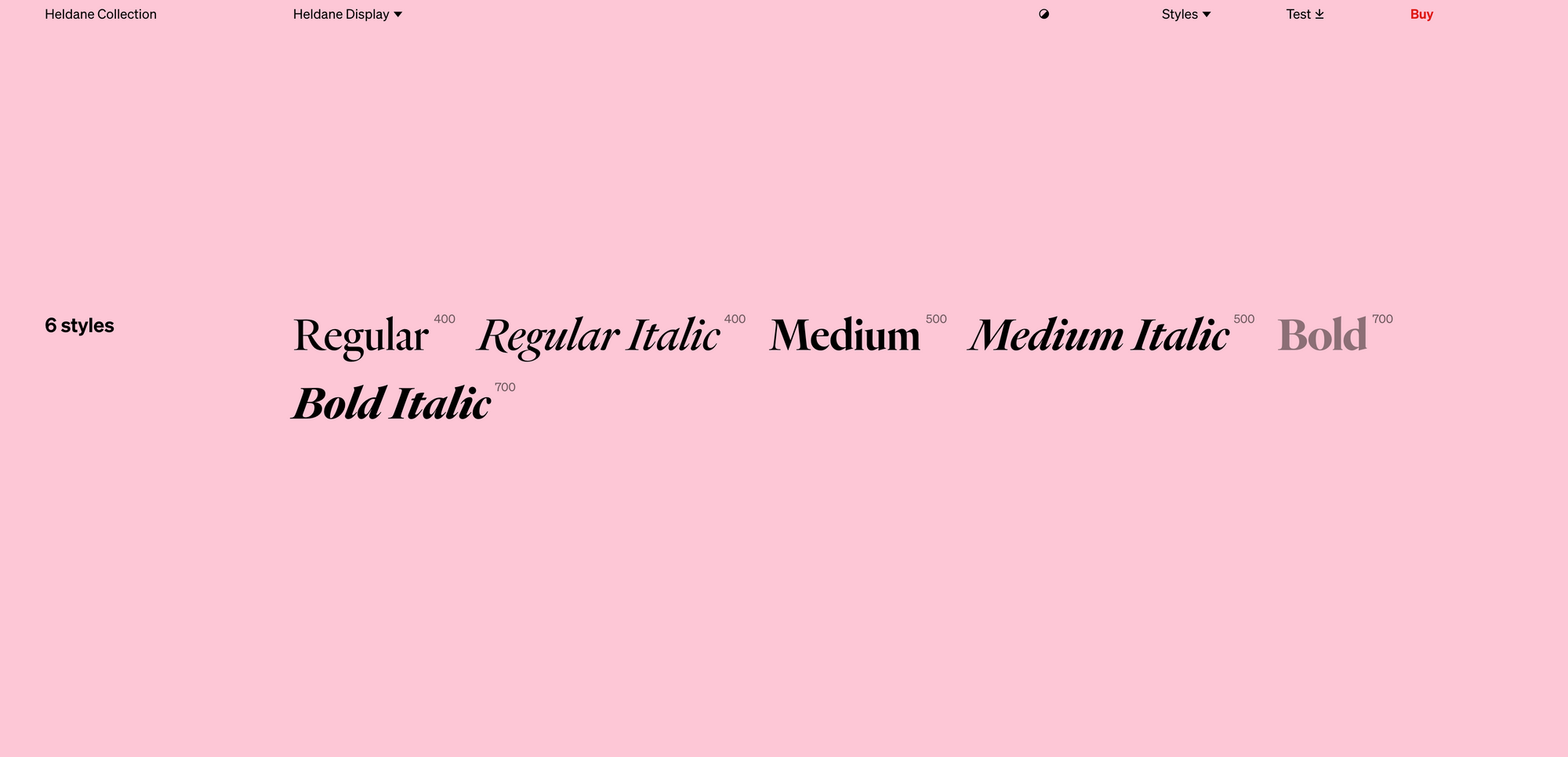Heldane Display is a serif typeface designed by Kris Sowersby and published through Klim Type Foundry in 2018. The design took place over a ten year period and drew inspiration from the sixteenth-century works of Hendrik van den Keere, Claude Garamont, Robert Granjon, and Simon de Colines. The family is available in three weights with matching italics, as well as a corresponding text version.
