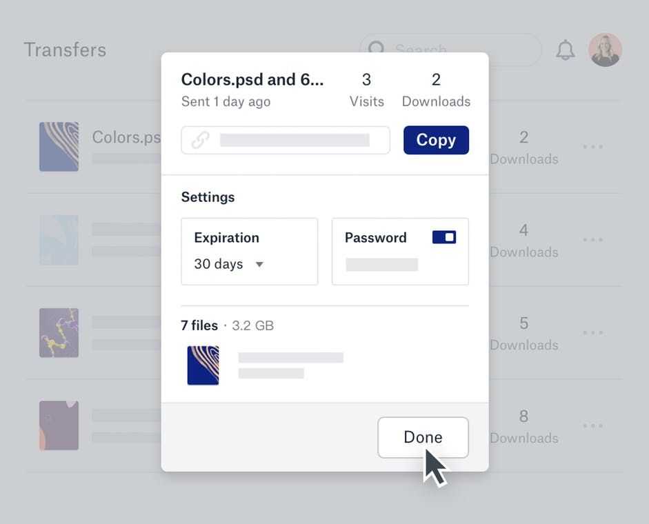 With Transfer, users can send up to 100 GB of files with the option to drag & drop files to upload from computer or by adding items stored in Dropbox. The Transfer link can be used by anyone & be sent via an automatically generated email right from Transfer.