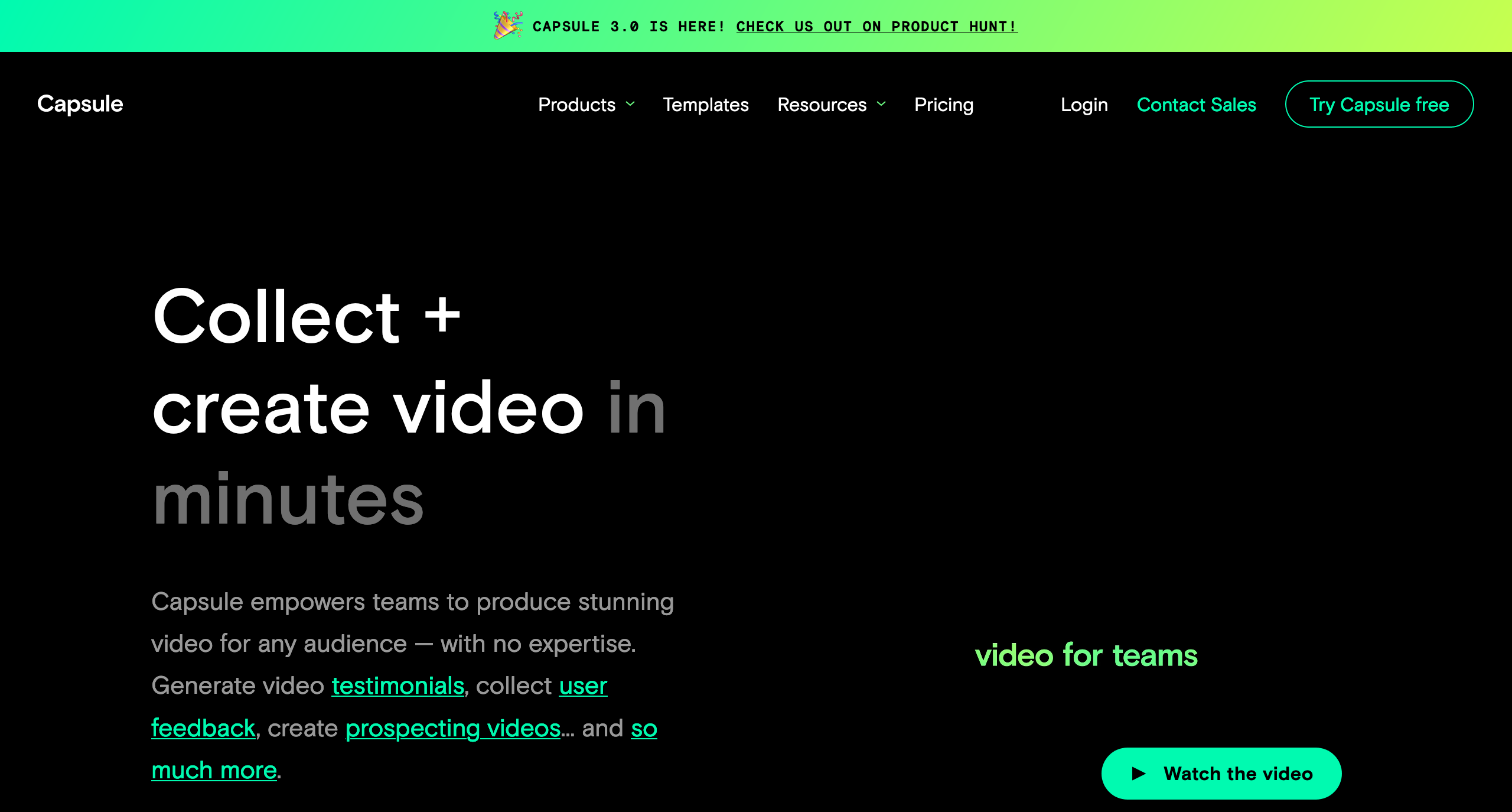Capsule is the ultimate tool to collect and create video in minutes, no matter if you want to generate video testimonials, collect user feedback, create prospecting videos, or anything else. Capsule empowers team to produce stunning video for any audience. And the most important thing, no expertise needed.