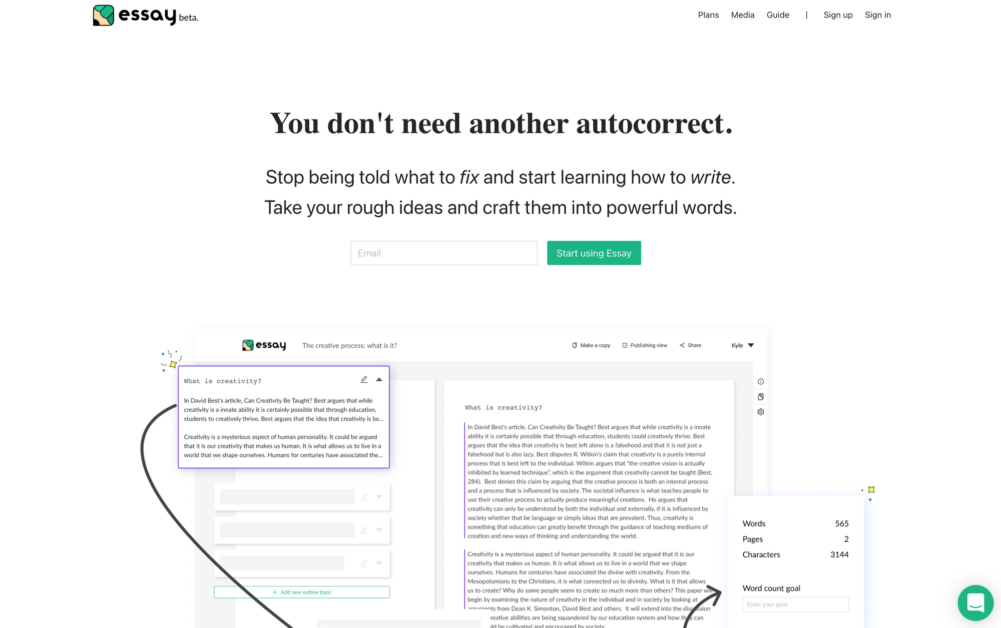 Grammar correction apps just like Grammarly do a superb job correcting your texts, suggesting changes, and set the right mood of your written words. The only downside, those apps do not teach you how to write better, they highlight your errors and give you suggestions instead. Essay is an app that does not tell you what you need to fix, it helps you to start learning how to write. With Essay you can take your rough ideas and Craft them into powerful ideas.