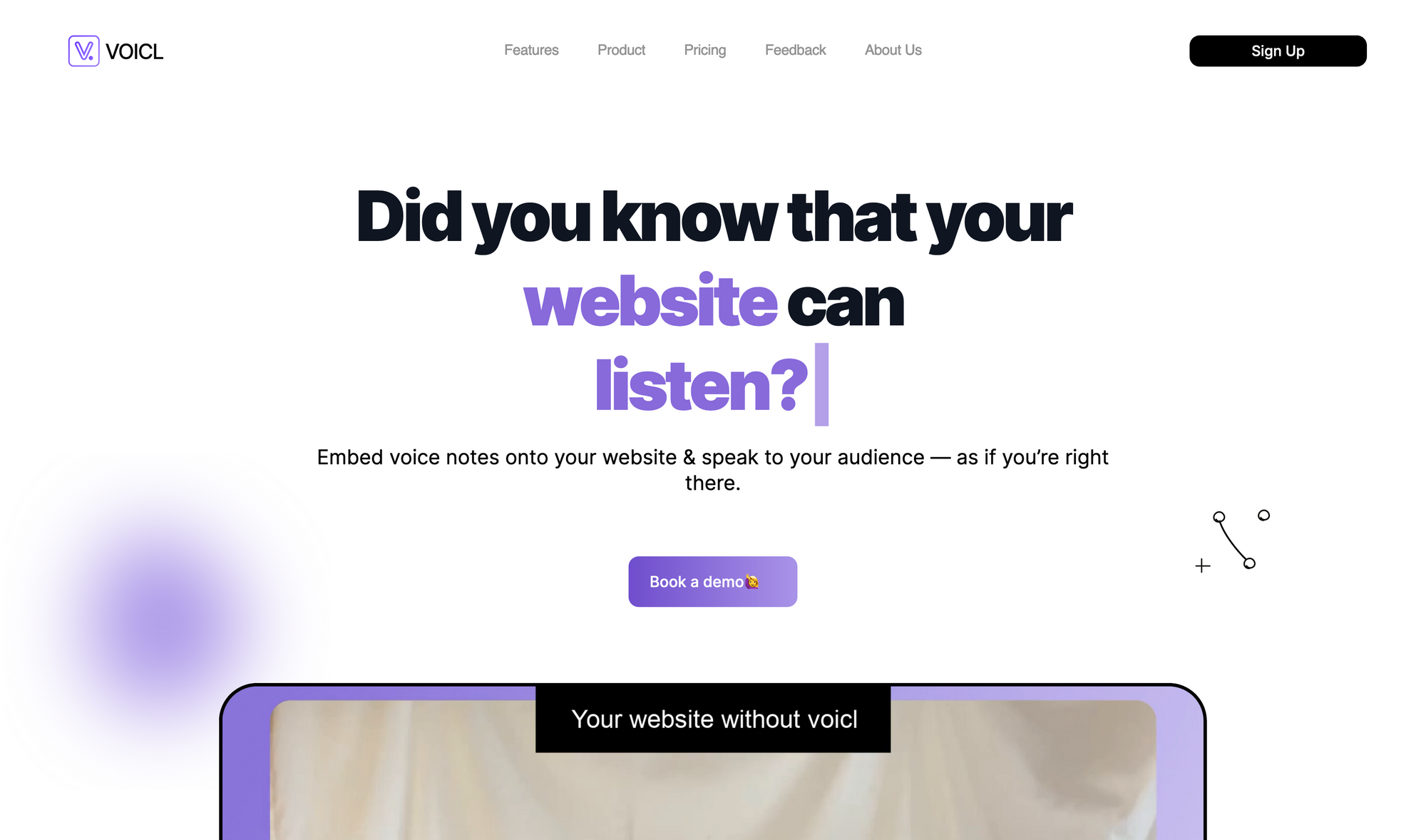 The one thing that makes Voicl a really important tool and service, is the fact that embedded voice notes make your site accessible. With Voicl you can use your voice to explain your written content to your audience. That way, you make your website accessible to everyone, which means everyone gets to understand your product, tool, service, features while not missing out on the personal experience. Voicl embed voice notes is a great way to help you explain your products and features better, encourage clients or potential customers to get in contact or book a demo and make your site accessible to everyone. The implementation of Voicl is also incredibly simple. All you have to do is add your URL to your Voicl account, then add one line of code to the head tag of your website, and after that, you can use Voiclâs smart embed function to add the voice notes.