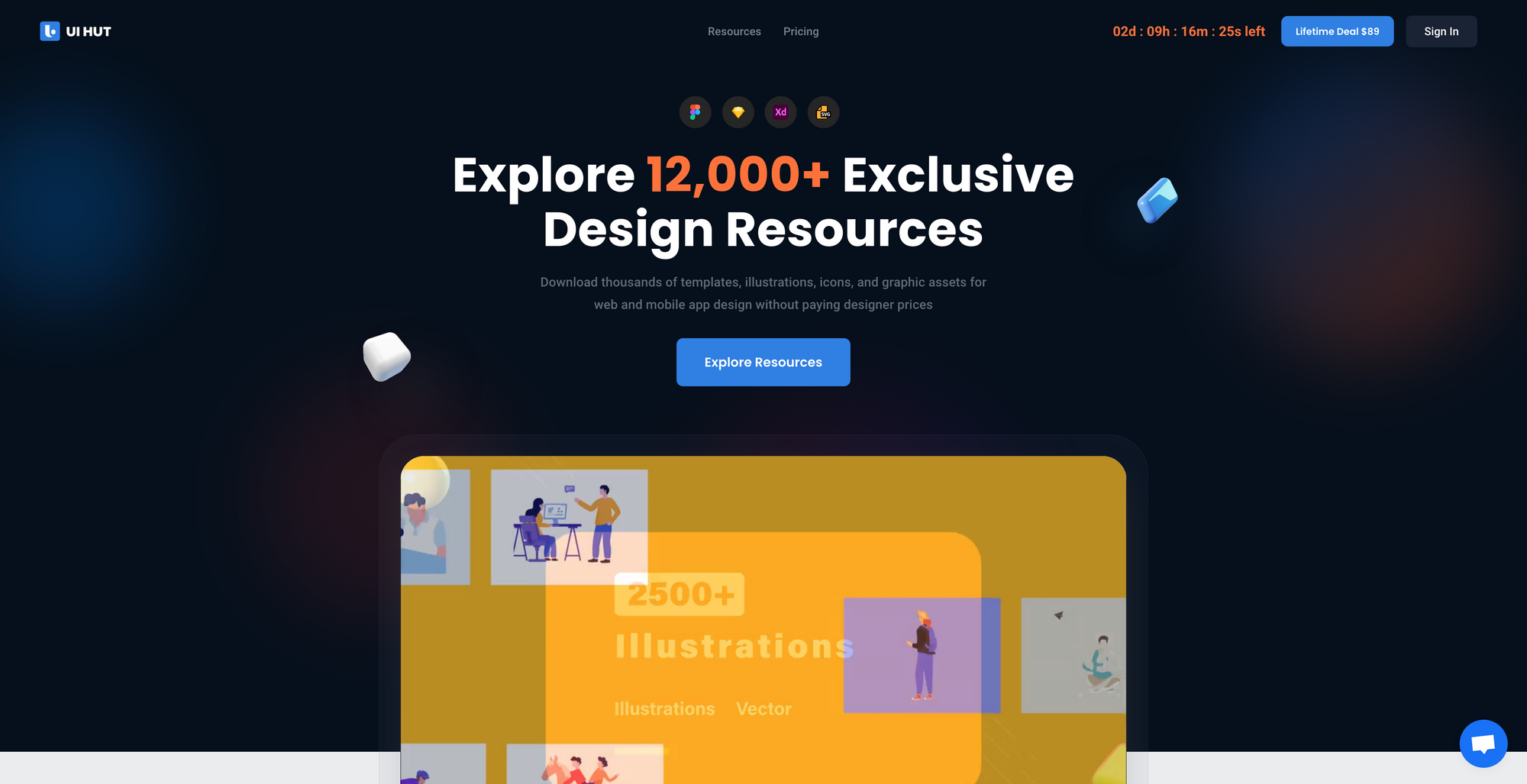UI Hut is a huge library full of useful and exclusive design resources. UI Hut contains over 12,000 resources ranging from templates, illustrations, icons, and graphic assets for web and mobile app design. All of UI Hut's resources are exclusively available on their platform. Free users can download up to 25 resources per day, premium users will enjoy 150 downloads. UI Hut is currently running a lifetime deal, which will give you premium access for a one-time payment of $89. Check it out.
