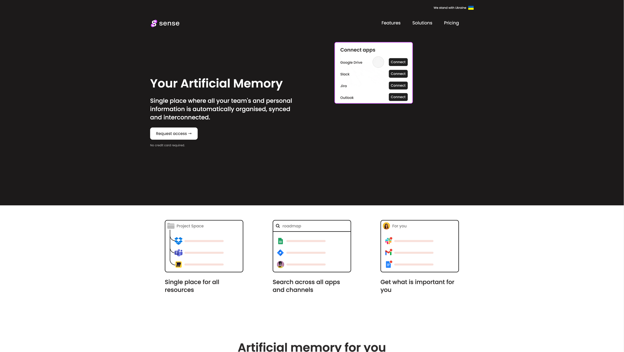 When you are working across a team, it is likely that you use a variety of different tools to structure, organise, and manage all your work, no matter if it is files, documents, notes, or anything else. As a result, it can happen that your work gets scattered across different tools, making it hard to find what you are looking for. Sense is your artificial memory, delivering a single place where all your teamâs and personal information is automatically organised, synced, and interconnected.