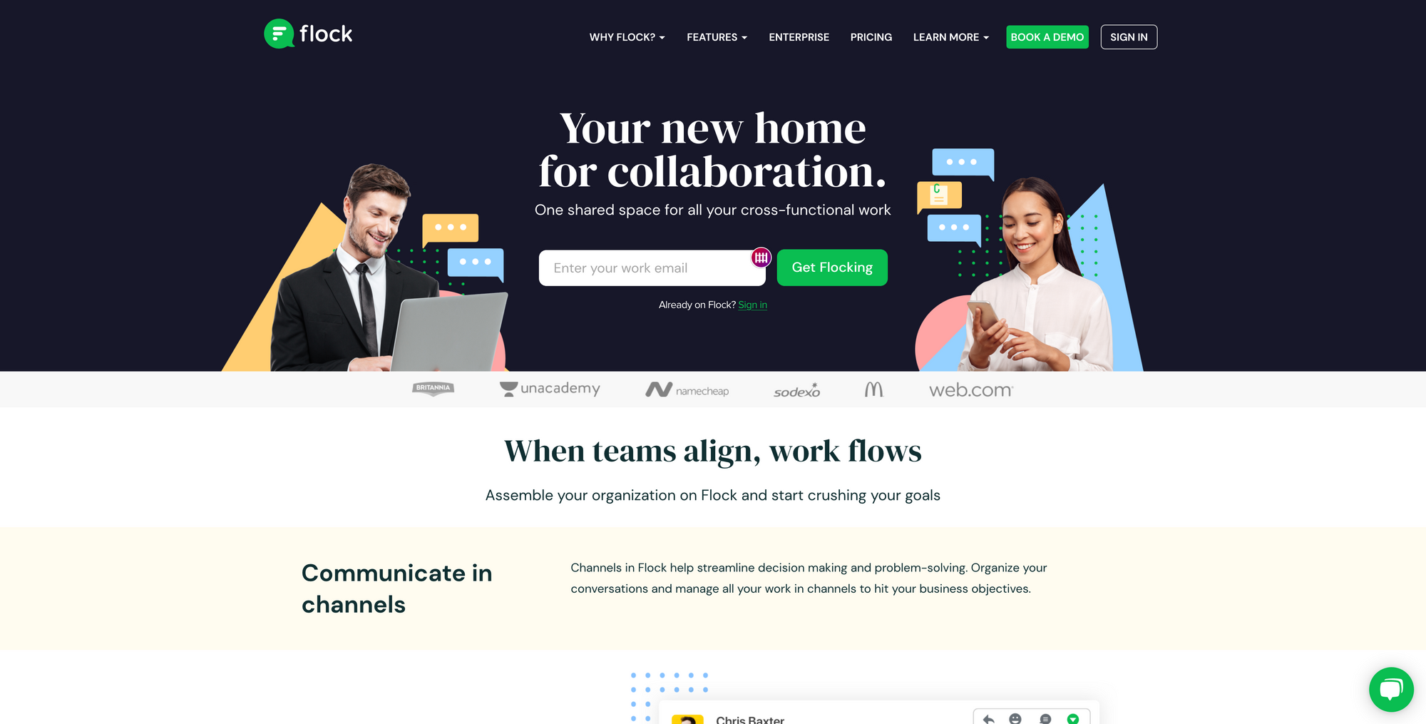 Flock is a central hub and workspace for all your cross-functional work and collaboration. At the core, Flock can be seen as a Slack alternative, as Flock lets you create channels to help streamline decision making and problem solving. Communication in channels within Flock gives you the power to organize all your conversations and manage all your work. Say goodbye to messy chats and emails and create dedicated channels for anything worth discussing.
