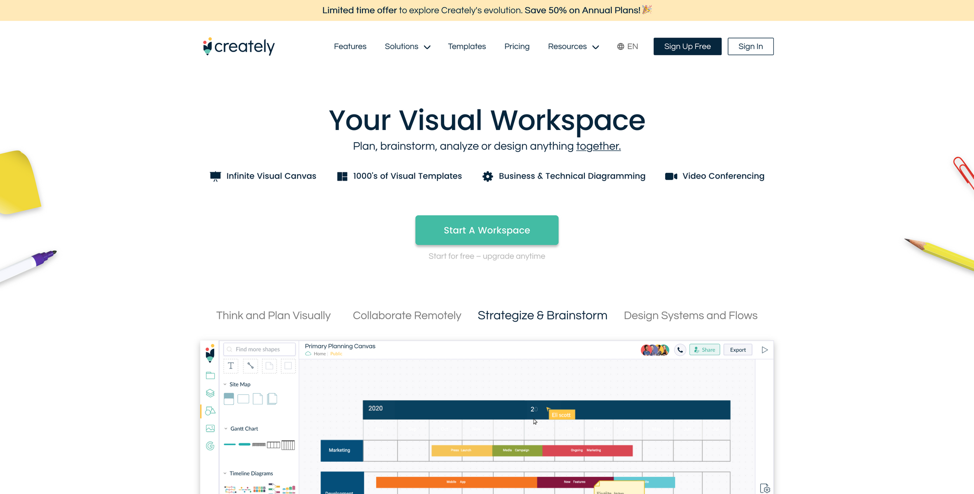 Creately is an awesome tool that delivers you a super simple way to work visually and collaborate with your whole team. Creately's built-in features allow you to sketch out concepts, analyze processes, brainstorm plans, and think and collaborate visually. At the core, Creately was built with speed in mind, so you can sketch, concept, analyze, draw, and brainstorm fast. When you open up Creately for the first time, you will be welcomed by an infinite canvas that you can use to let your creativity flow.