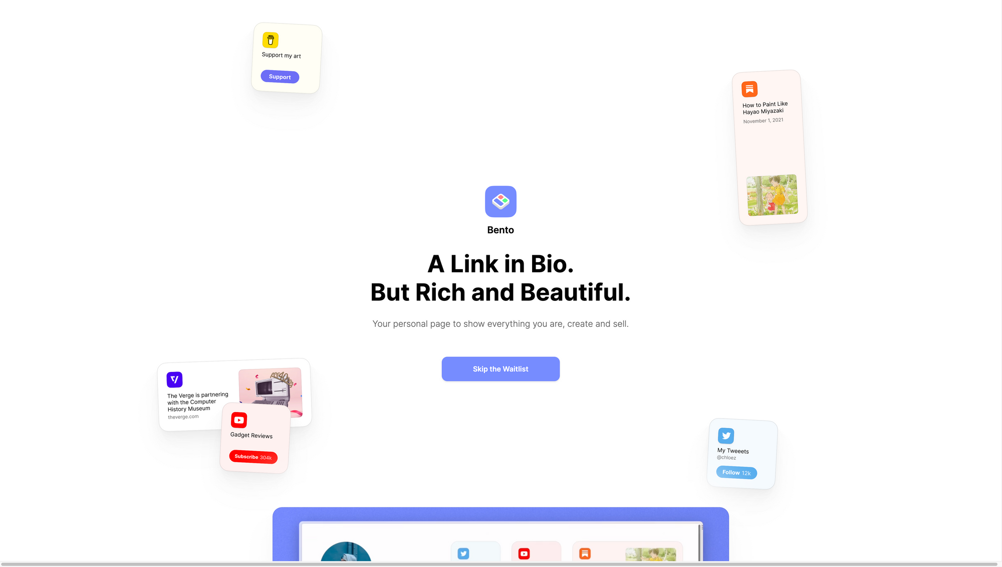 Everyone today is creating something and sharing it online, from videos, podcasts, photos and streams, to newsletters and paid products. Years ago, the ability to build online portfolios or websites was limited to those with coding knowledge. Now, the no-code movement has made designing and creating websites available to everyone. However, many no-code tools are complex and require a steep learning curve. Bento is a simple solution for creating a personal website to showcase what matters most. Bento is not another link-in-bio service, it lets you integrate all your content into a personal page.